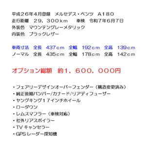 14’ メルセデスベンツ A180 フェアリーデザイン・デモカーが入庫致しました! 構造変更済みです! カスタム総額160万円以上! ワイド感溢れるAクラスの入庫です。 愛知県のお客様にご成約いただきました。ありがとうございます。